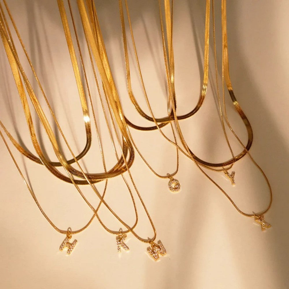 Feminine yet dainty our Herringbone Initial Necklace features a bold herringbone chain with a sparkly custom initial of your choice!