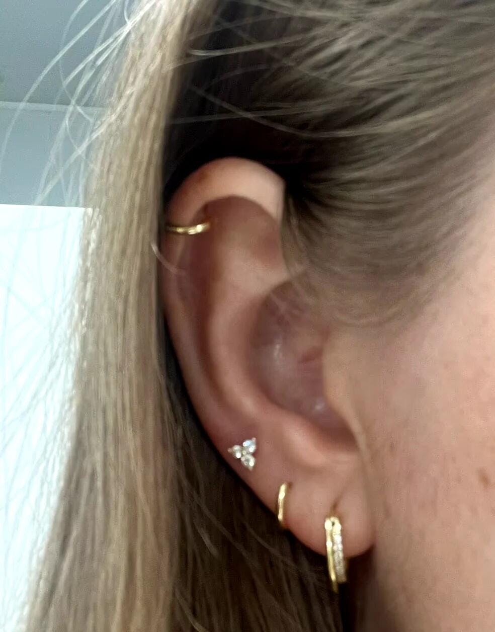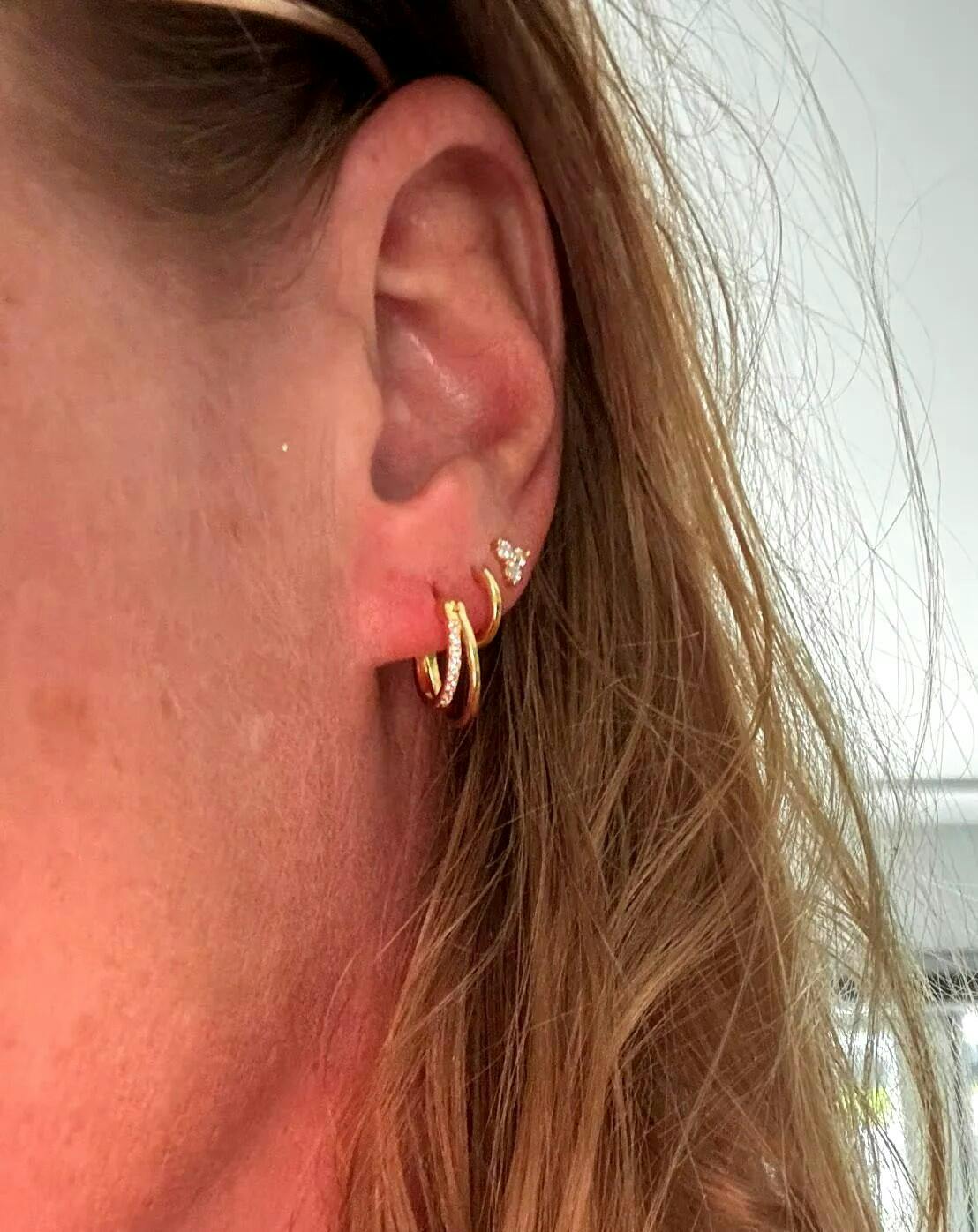 Simple, ultra dainty, but still statement-making. Classy and beautiful, stack these earrings with other gold jewels you have or wear alone. Add some glam to your stack for a look that'll stun. You can sleep, shower, and hang in them all day long.